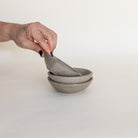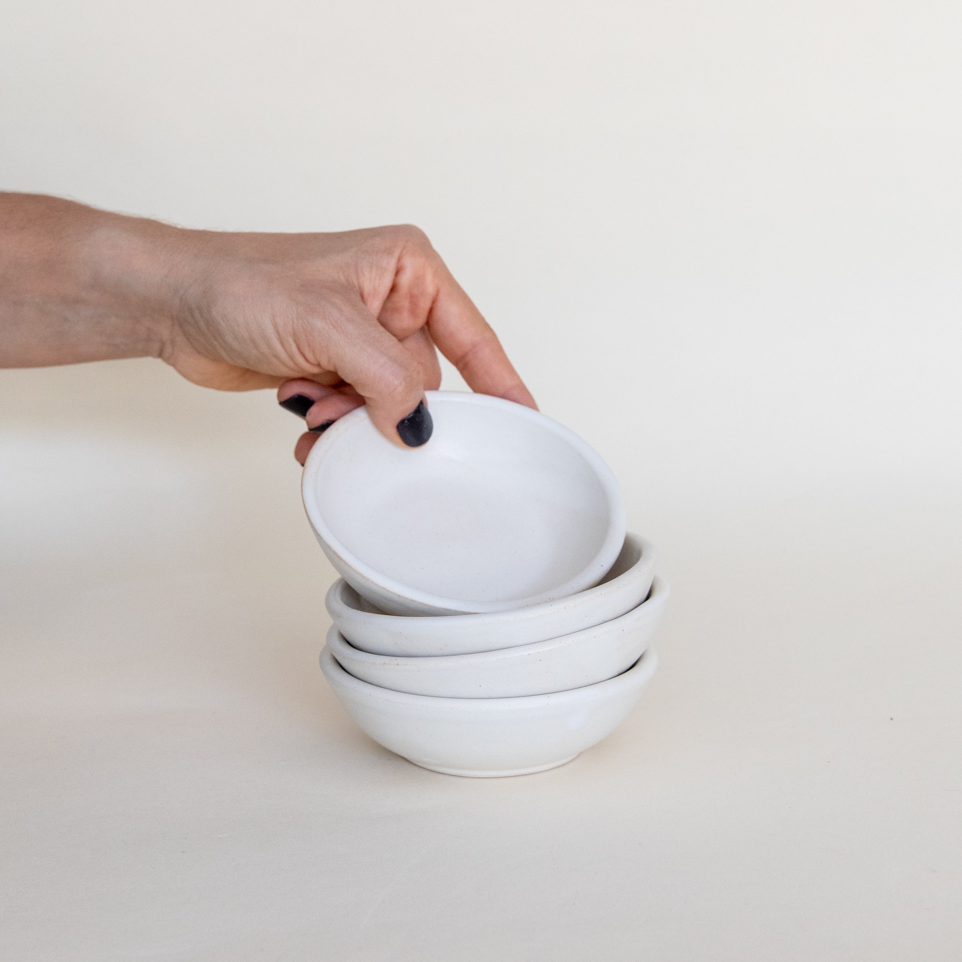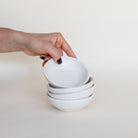 This piece is formed on the jigger using our custom designs and molds. Before arriving in your hands, each piece passes through ours dozens of times: they are jiggered, trimmed, fired, glazed, fired again, inspected for quality, and, finally, smoothed.