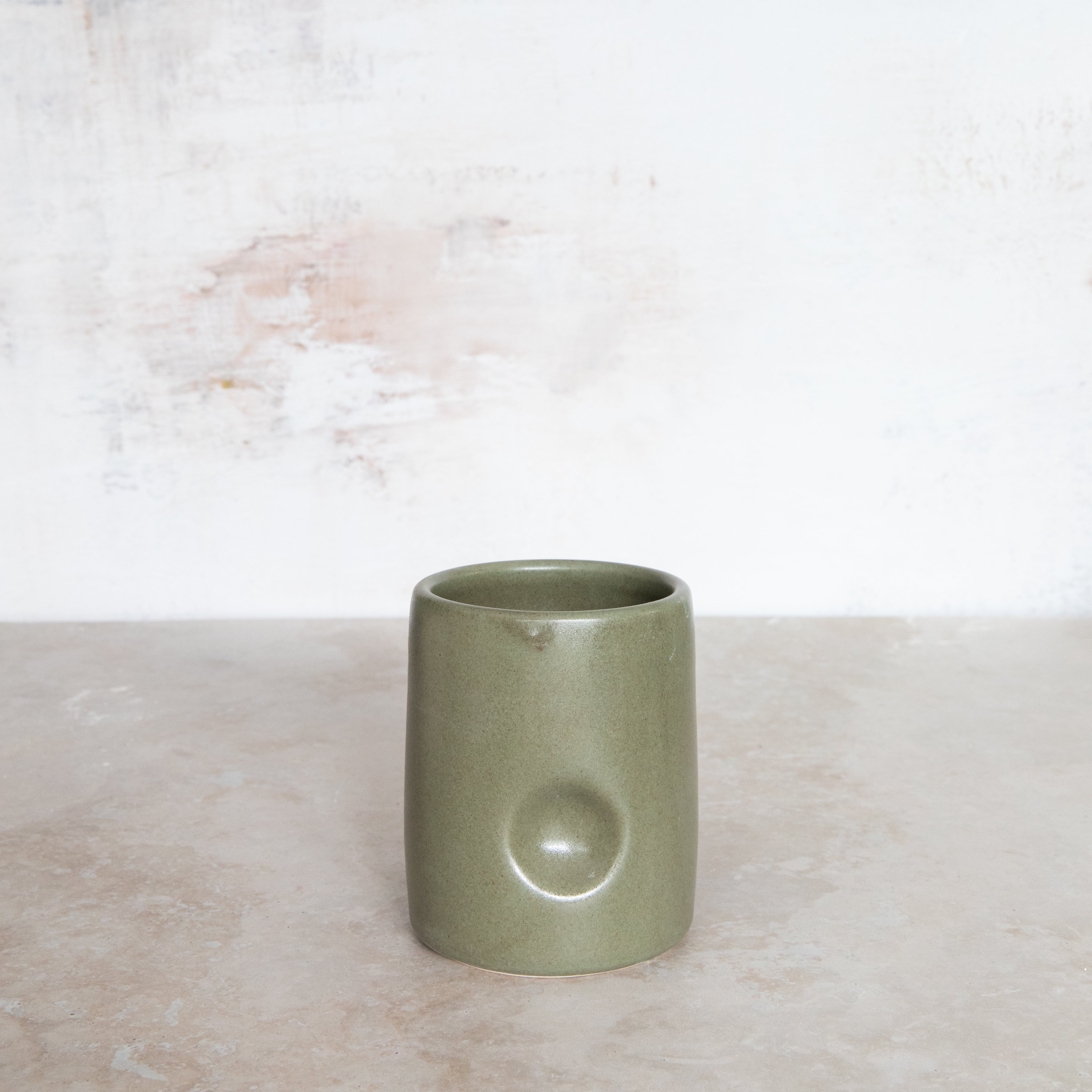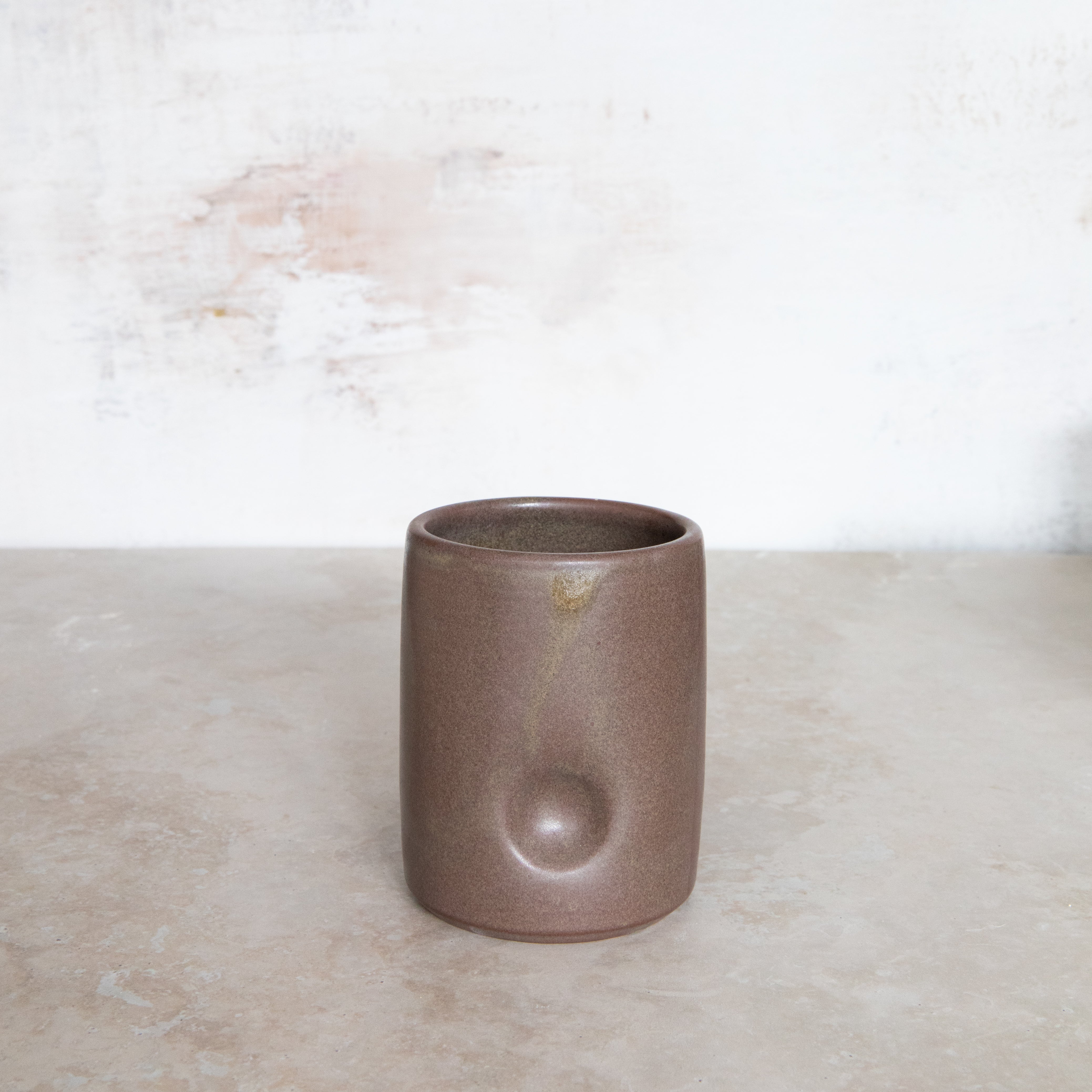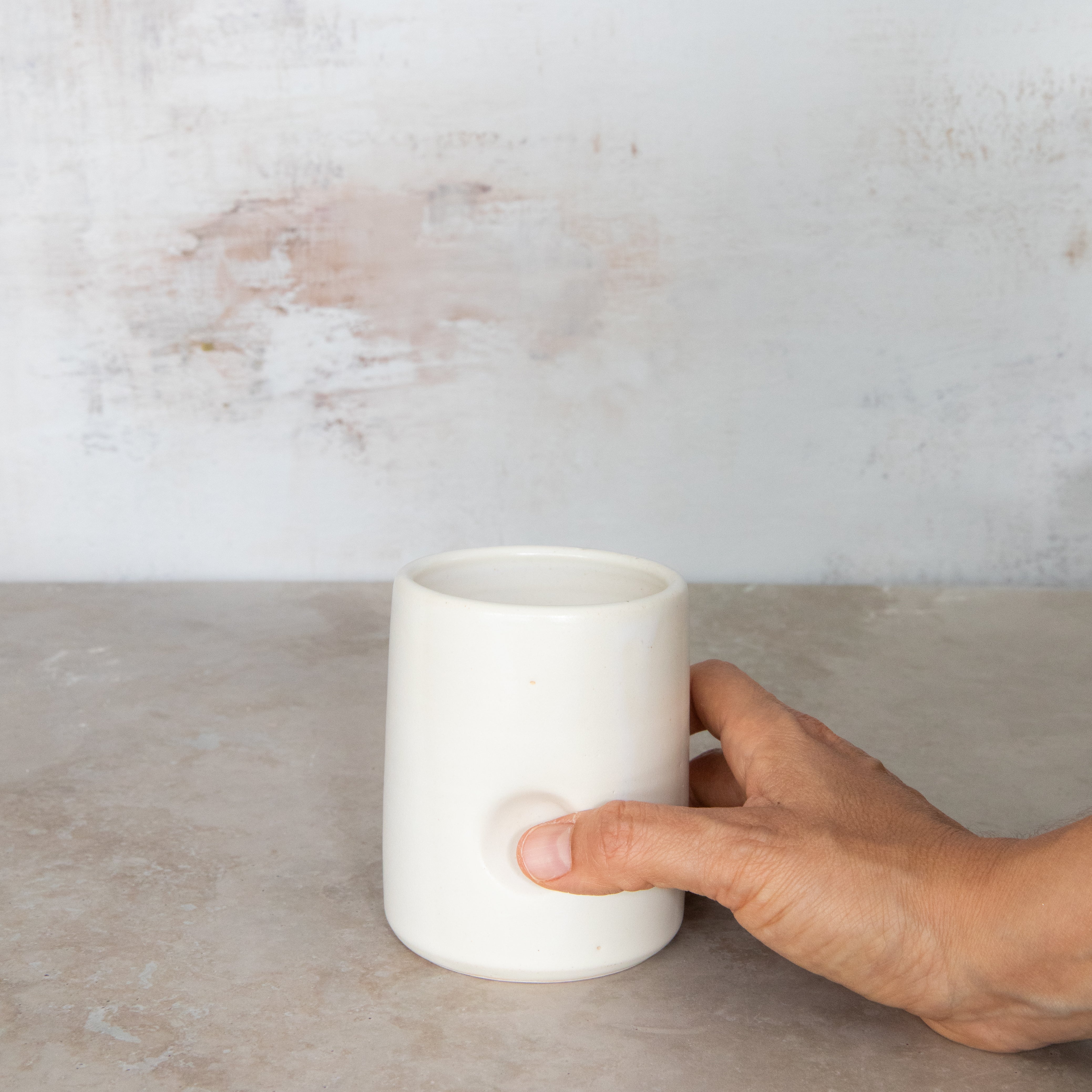 Thumb cups were designed to feel extra good in your grip. These cups have an indentation for your thumb or finger. The indent gives you a firmer grip on the cup. Suitable for hot or cool beverages. Extra hot beverages will need a few minutes to cool before handling the cup.